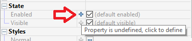An undefined property may not have a value at all, and will not exist in the mark-up that defines your component. This is like excluding an attribute or property when writing HTML and CSS; it simply will not exist in the mark-up. Some properties are required and therefore require values, and are assigned a default value. To see the default values, mouse over the property for the tooltip or click the arrow at the start of the value field to reveal its default value in the value field.