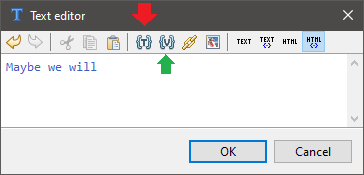 In the Text Editor toolbar, the Link to Text table tool, {T} will allow you to connect your current text to a new text ID, or insert text already stored in the Text table. In this way, you can build combinations of raw text and HTML formatting.